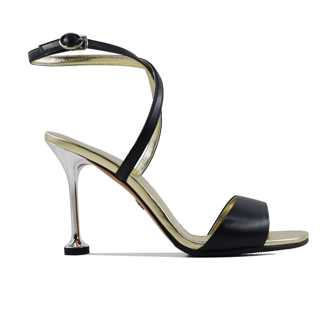 ✅ Effortless Charm: The sleek golden and black design paired with an elegant ankle strap and silver-tone 90mm heel height exudes refined sophistication.