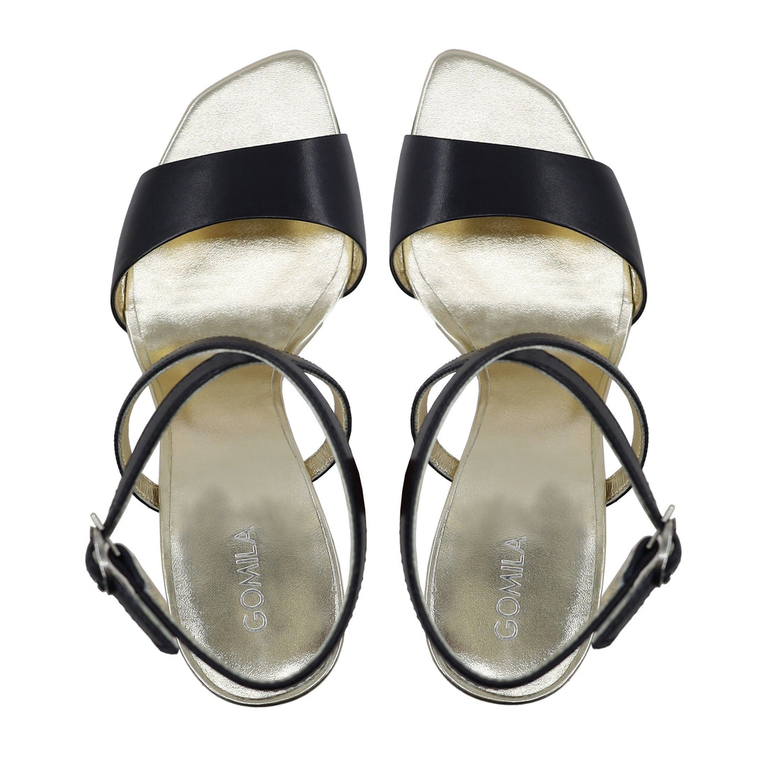 Anna - Women's Golden and Black Strapped Heels