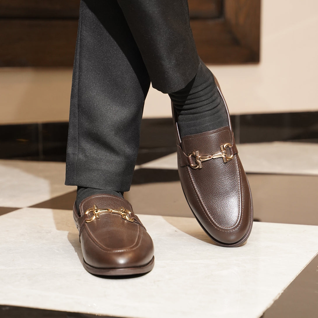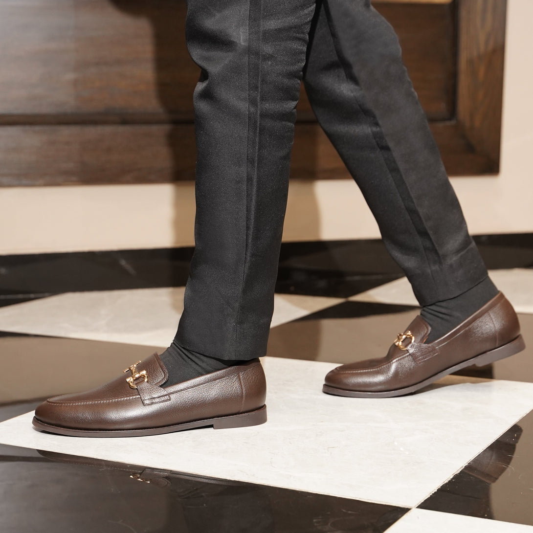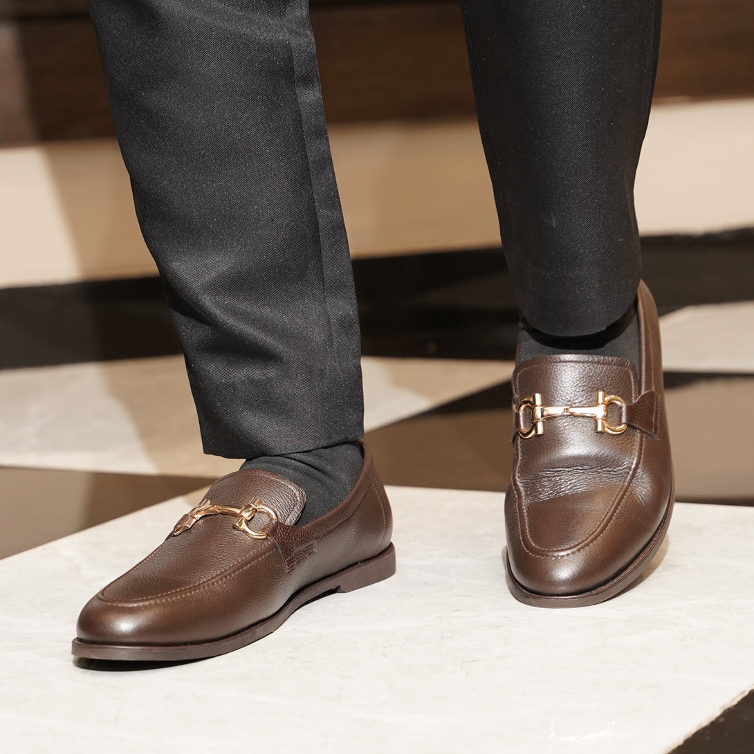 Bucharest - Men's Dark Brown Pebble Grain Leather Loafer is a type of footwear typically made from leather with a distinctive pebble grain texture. Loafers are slip-on shoes that are versatile and can be worn in both casual and semi-formal settings. The pebble grain texture adds a touch of uniqueness to the classic black loafer.