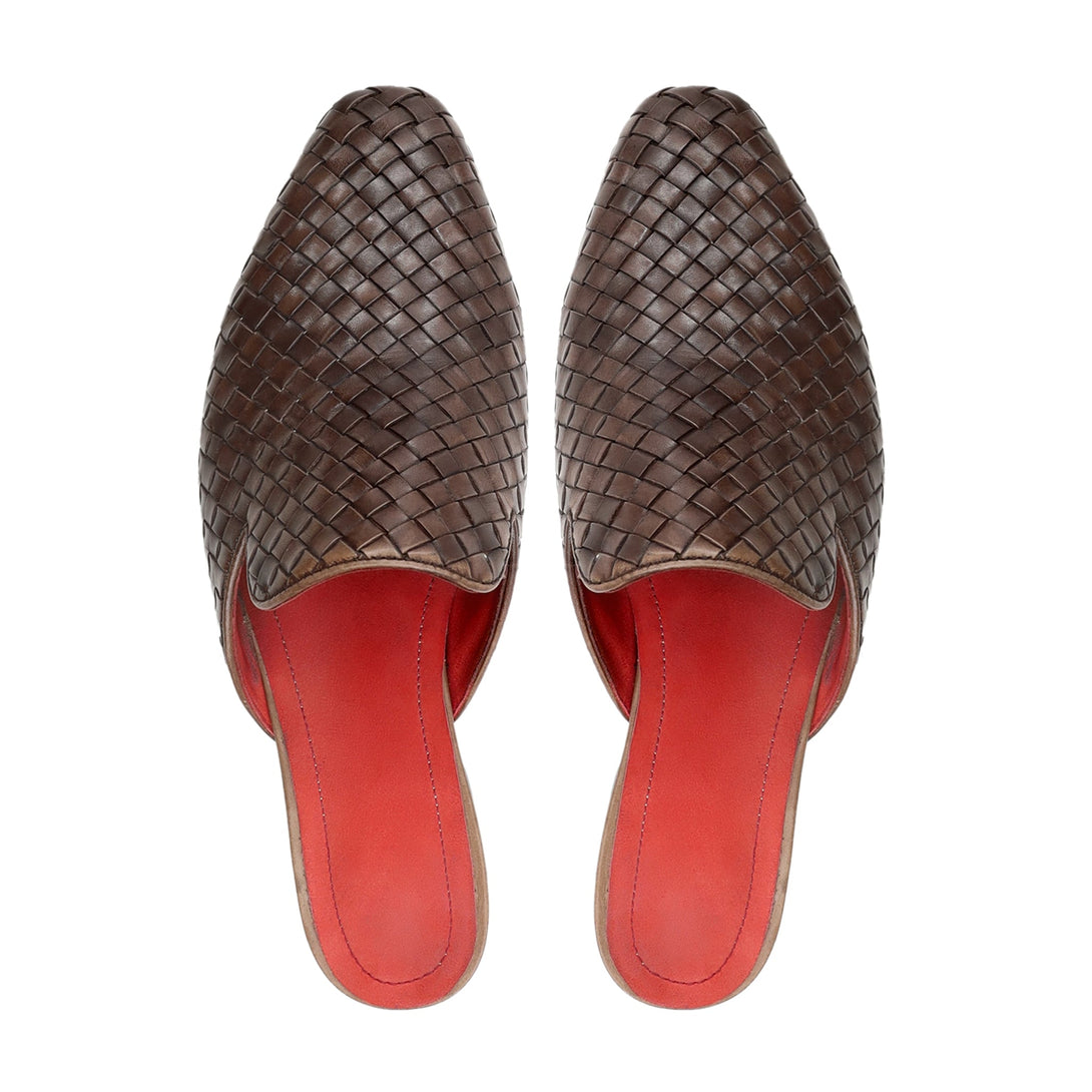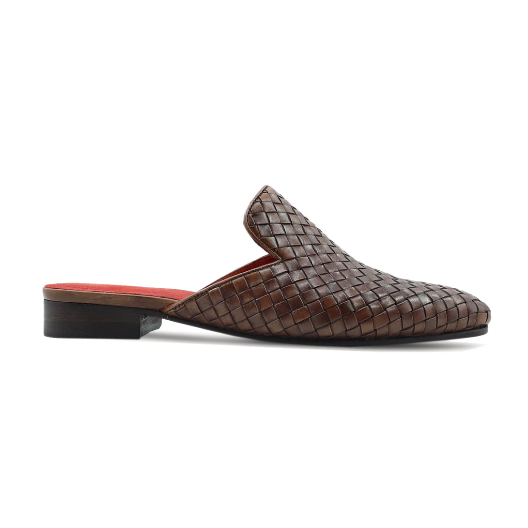 Chicito - Men's Dark Brown Hand Woven Calf Leather Slipper