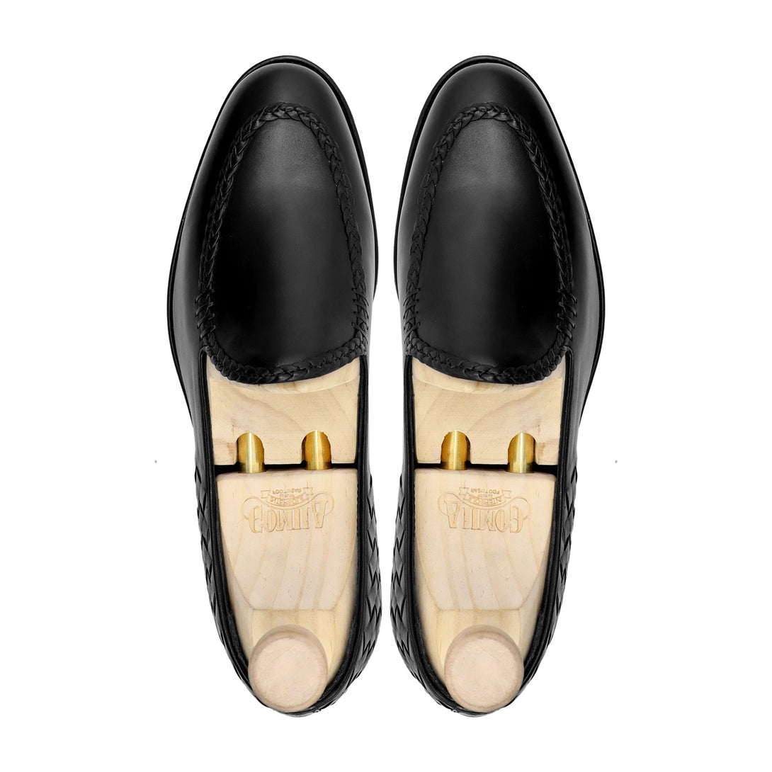 Ivanovic - Men's Black Calf and Hand Woven Calf Leather Loafer is constructed on our signature last 371-S-01. The black calf leather exudes refinement, while the hand-woven calf leather detailing adds a touch of uniqueness and elegance. With its leather rubber sole, this loafer ensures durability, comfort, and traction for all-day wear. The Loafers feature an easy slip on design, making them convenient for everyday wear. These shoes are suitable for both casual and semi-formal occasions.