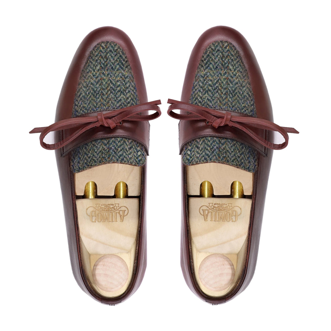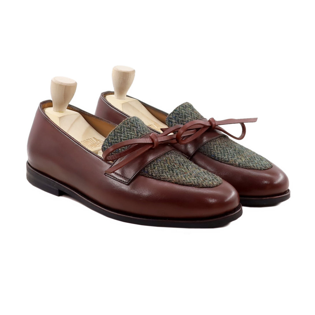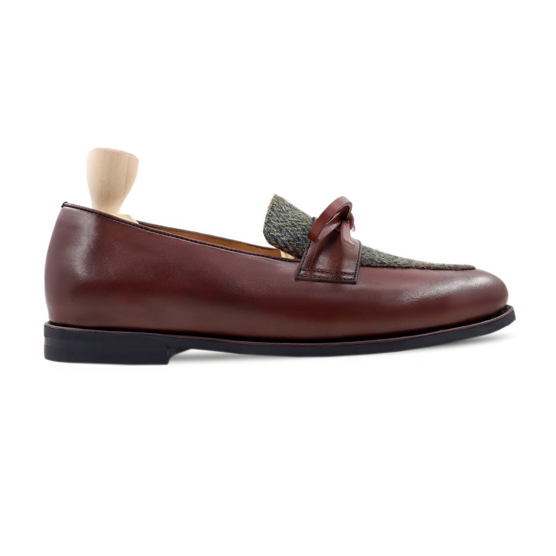 Kynda - Men's Reddish Brown Calf Leather and Harris Tweed Loafer