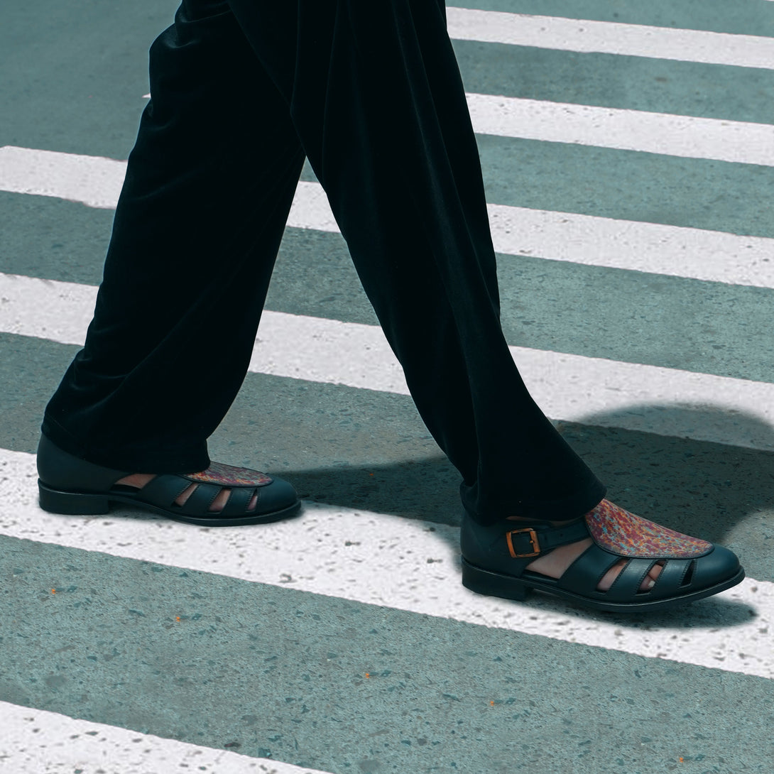 Pedri - Men's Black and Multicolor Calf Leather Sandal