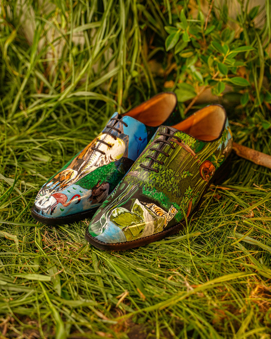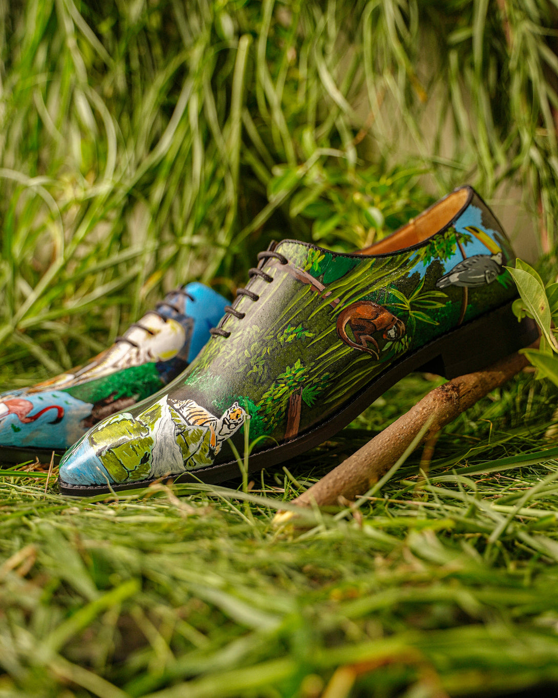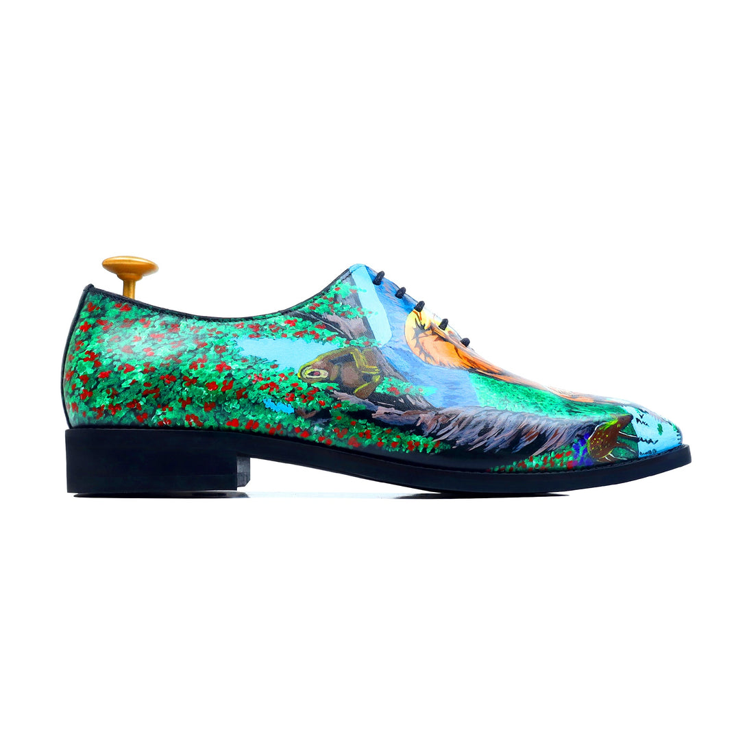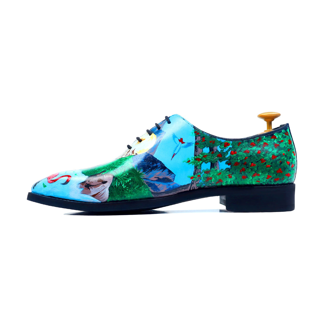 Immerse yourself in the essence of untamed wilderness with the Safari Wholecut, a statement of luxury inspired by the raw beauty of the jungle. Each pair is meticulously crafted from premium calf leather, showcasing nature’s vibrance—lush greenery, exotic wildlife, and vivid tones—brought to life through masterful hand-painting.