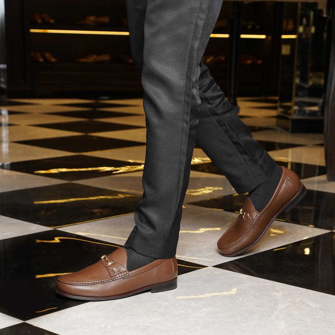 Tom - Men's Brown Pebble Grain Loafer is a type of footwear typically made from leather with a distinctive pebble grain texture. Loafers are slip-on shoes that are versatile and can be worn in both casual and semi-formal settings. The pebble grain texture adds a touch of uniqueness to the classic black loafer.