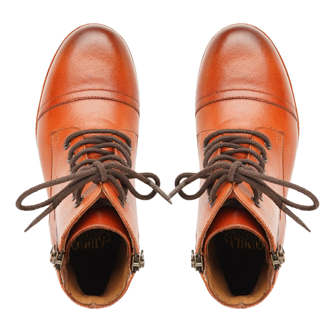 Sara - Ladies Orange Tan Pebble Grain Leather Ankle Boot with a commando sole is a rugged yet stylish choice. The vibrant color adds flair, while the commando sole provides durability and traction. Ideal for various outdoor activities, these boots blend boldness with practicality.
